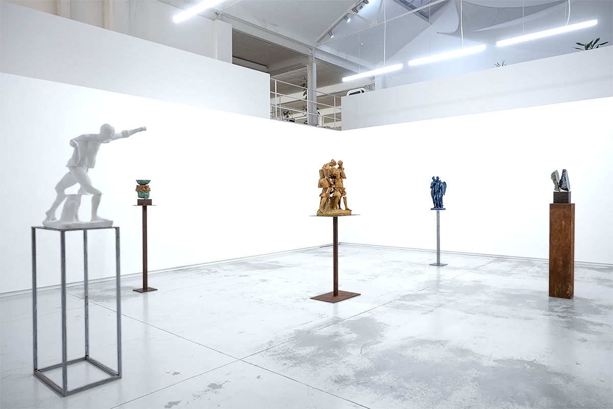 The sculptures position the machine as an apprentice, fabricated by casting synthetic resins and metal powders directly into 3D printed molds, imperfectly imitating perfect classical forms. The interplay between technology and tradition reveals the symbiotic relationship between humans and machines, implementing digital precision while retaining the presence of the human touch.